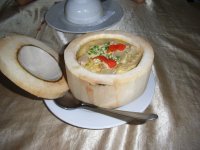 名物「かぼちゃプリン」どんなものかと思ったら、くりぬいたかぼちゃを容器にして蒸したプリンをくし型にきったものだった。甘くないので、プリンというよりは硬い茶碗蒸しのような・・それにかぼちゃにもあまり味がついていない。体にはいいかもしれない。うちに帰ってきてガイドブックを見たら、アヒルの卵って書いてあった。ほ~。