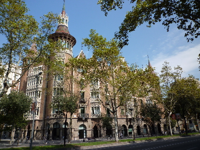 「カザ・ミラ」から、ほど近いところにあるカダファルクの代表作「ラス・ブンシャス集合住宅」 もモデルニスモ建築。とんがり屋根が目印だけど並木がジャマで、写真が取れません。