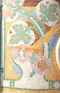 モンタネール得意の花柄のタイルやレリーフが、豪華!