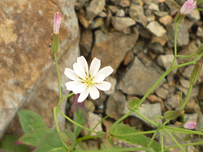 白くて、小さい花は似た花がたくさんある。これは多分「シロバナニガナ」